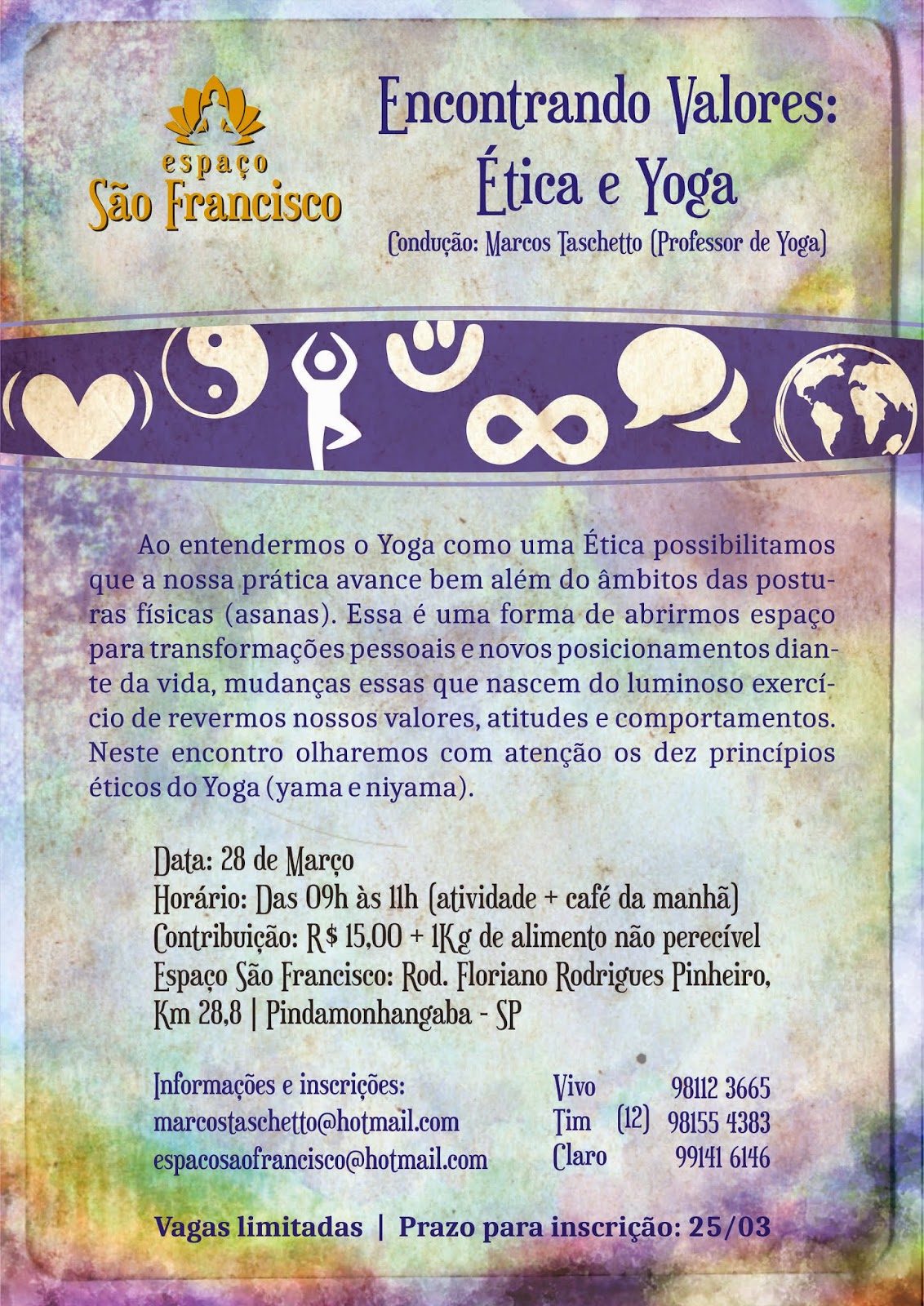 Será com esse norte que trilharemos nesse "Encontrando Valores: Ética e Yoga", onde aprofundaremos algumas questões ligadas à aplicação dos dez princípios éticos do Yoga em nossa vida cotidiana.